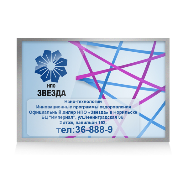 оформление наружнего баннера для официального дилера НПО "Звезда" в городе Норильск. (размеры 90х60 см)
