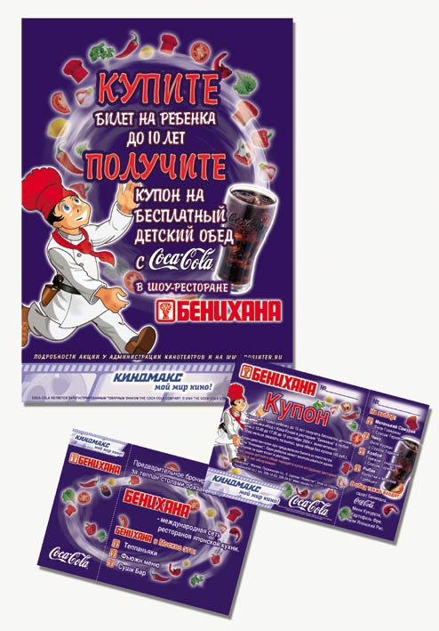 Для ресторана Бенихана был нарисован повар и разработан дизайн плаката и билетов.